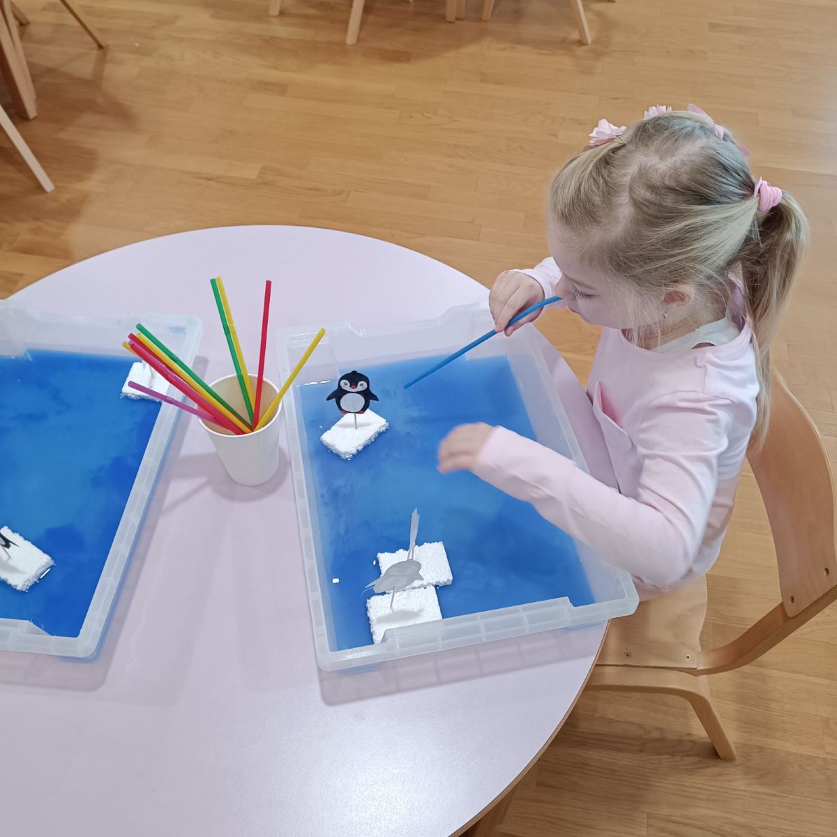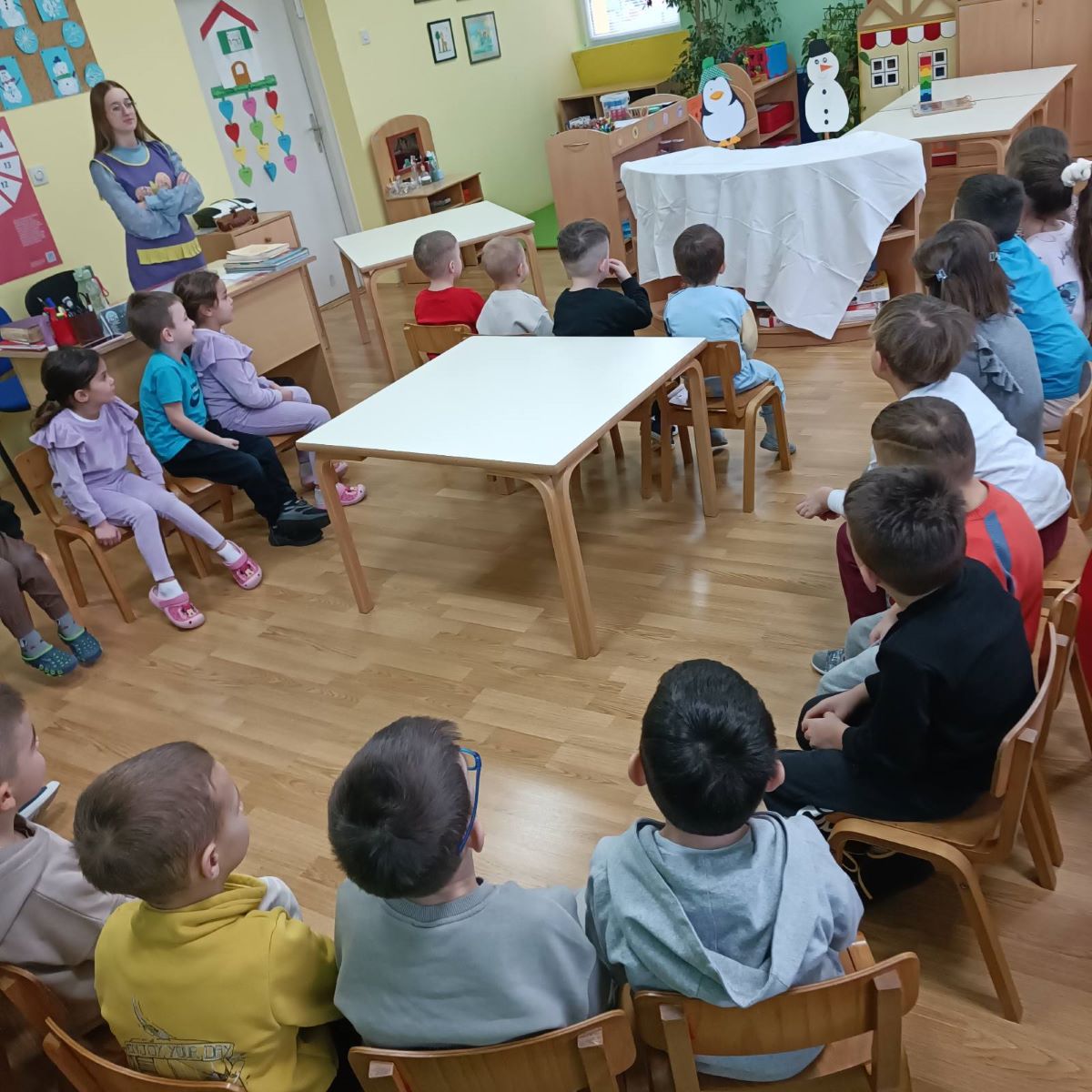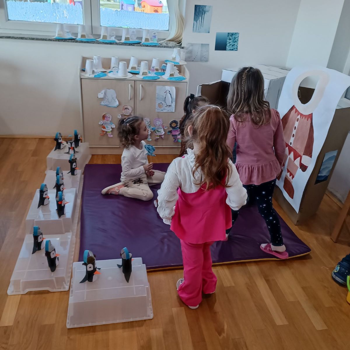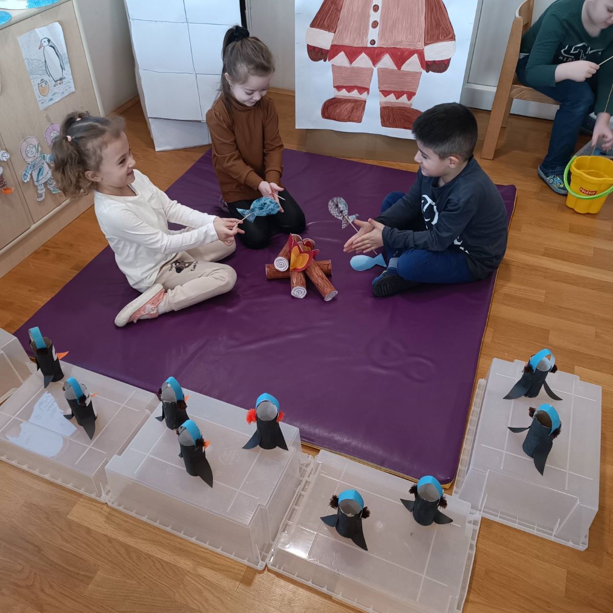 Djeca istraživala obilježja života u hladnoj klimi 3. veljače 2026. Facebook Kroz aktivnosti smo spojili temu Sjeverni i južni pol, Eskime, polarne životinje i obilježja života u hladnoj klimi.